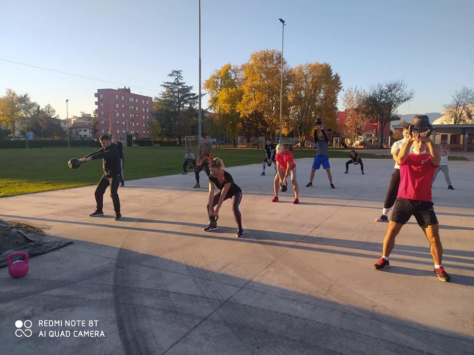 Durante la lezione, Enrico Da Ros, preparatore atletico riconosciuto a livello nazionale e preparatore del kettlebell training, ha anche illustrato la storia dello strumento e ha mostrato la tecnica cardine, che è quella dello swing. Tutti i presenti hanno acquisito la tecnica, in un circuito divertente quanto probante.