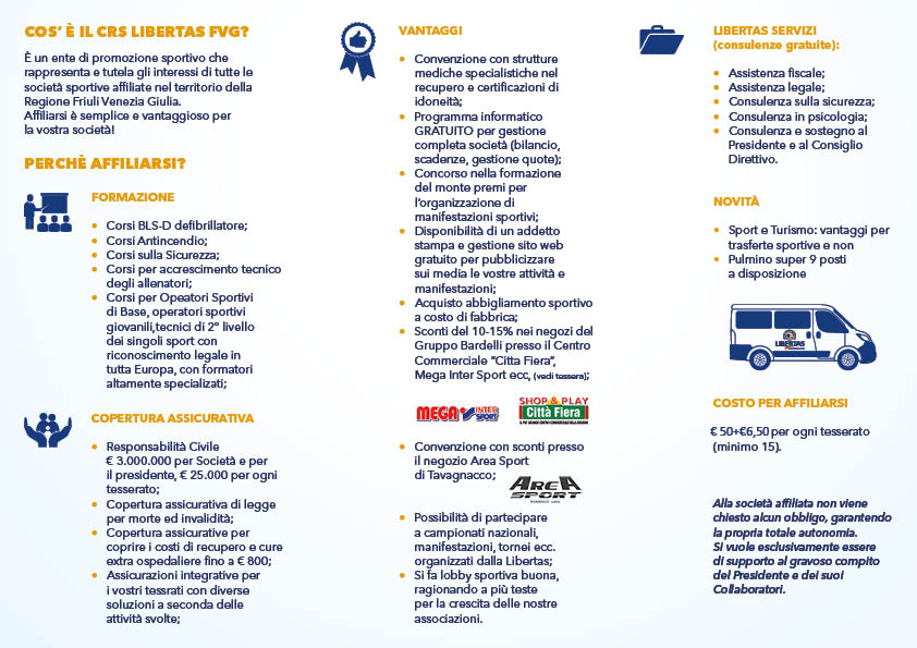 - Si può aderire alle Libertiadi – Grande Manifestazione Sportiva per Società Libertas di interesse regionale con valenza nazionale;