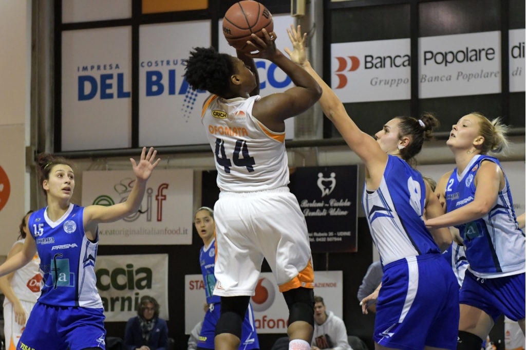 UDINE: Bianco 8, Ciotola, Beltrame, Mancabelli 4, Sturma 2, Mio n.e., Vicenzotti 10, Pontoni, Da Pozzo, Rainis 6, Romano n.e., Ofomata 17. Coach Medeot.