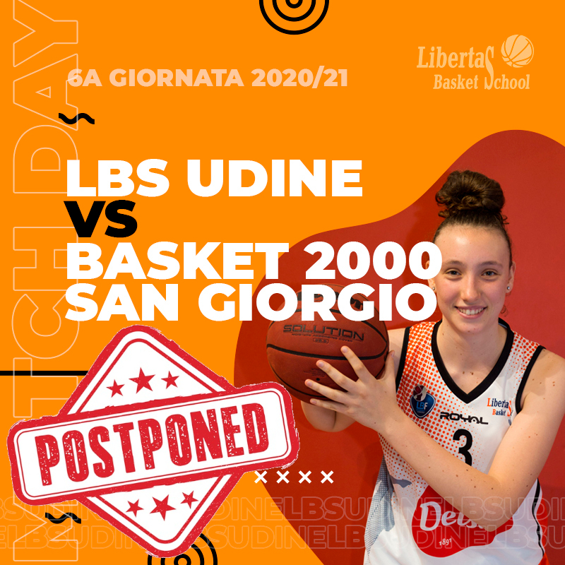 In seguito alle positività al covid-19 riscontrate all’interno del gruppo squadra della società ospite, la gara fra Libertas Basket School e Basket 2000 San Giorgio Mantova, inizialmente prevista per domani, 7 novembre, è stata posticipata a mercoledì 25 novembre, ore 19.30.