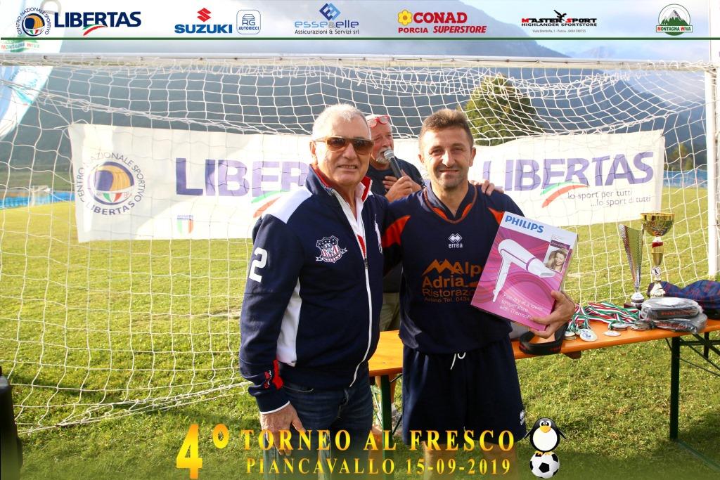 Nella fase di premiazione presenti sia il presidente provinciale Libertas Ivo Neri che il presidente della Fisi di Pordenone Luca Marcolin che oltre a premiare le migliori due formazioni ovvero la Locanda di Aviano e la Base USA hanno premiato Diego Da Fre di Montagna Wiva quale miglior portiere e Massimo Cristofoli della Locanda quale miglior giocatore.