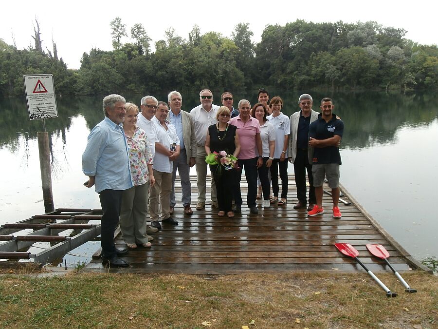 Pordenone, 28.7.2015 - Alla presenza di autorità civili e sportive, sulla sponda purliliese del lago della Burida (sede del parco pubblico comunale) è stata inaugurata la Scuola nazionale Libertas di canoa, grazie alla collocazione di un prefabbricato in legno adibito a spogliatoio e deposito imbarcazioni. Si tratta di una ubicazione temporanea, in quanto l'amministrazione comunale di Porcia si sta adoperando per acquisire l'area privata adiacente. "I nostri futuri passi consisteranno nell'acquisizione del cantiere abbandonato dell'Associazione Remiera di Pordenone (il cui progetto è andato abortito a causa della mancanza di fondi, ndr) onde traslocarvi la casetta Libertas in maniera definitiva" annuncia Giuseppe Gaiarin, sindaco di Porcia. La Scuola di canoa (intitolata alla memoria della cordenonese Barbara Nadalin, olimpionica di Atlanta 1996, prematuramente scomparsa) è di carattere nazionale. "In questa sede verranno infatti formati gli istruttori Libertas che potranno così insegnare la specialità in tutto il territorio italiano" spiega Mauro Baron, ct della Nazionale e direttore della neonata Scuola, che per lo svolgimento dell'attività si avvarrà dello staff tecnico del collaudato Gruppo Kayak Canoa di Cordenons, presieduto da Graziella Biasiato. E proprio quest'ultima rimarca come la Scuola sarà aperta tutto l'anno e per utenti di tutte le fasce d'età, che potranno apprendere le specialità della velocità e della discesa, nonché eseguire la preparazione propedeutica allo slalom su fiume. Artefice della realizzazione della casetta in riva al lago è Ivo Neri, presidente del Centro provinciale Libertas di Pordenone. "Il Gkc di Cordenons è stato fucina di campioni come Barbara Nadalin e Daniele Molmenti, eppure erano decenni che la dirigenza implorava invano le amministrazioni locali l'urgenza di un fabbricato di supporto - ha spiegato Neri durante la cerimonia - ho quindi deciso di attivarmi in prima persona, e dopo soli 8 mesi sono riuscito a convincere Porcia. Il Municipio ci ha concesso l'area, mentre la casetta è stata pagata con i risparmi di tre anni del Centro da me presieduto. L'attività è già iniziata da un mese, e in questo breve lasso di tempo abbiamo già registrato la presenza di 300 giovani, provenienti dai punti verdi dell'hinterland. Ragion per cui, ci attendiamo che nel 2016 si possa traguardare la partecipazione di un migliaio di utenti. Non solo, è prevista la futura organizzazione di manifestazioni agonistiche, e stiamo inoltre lavorando a un paio di progetti inerenti i disabili e la salute delle donne". Al taglio del nastro sono intervenuti Luciana Moro (madre di Barbara Nadalin) e Luigi Musacchia, presidente nazionale Libertas.