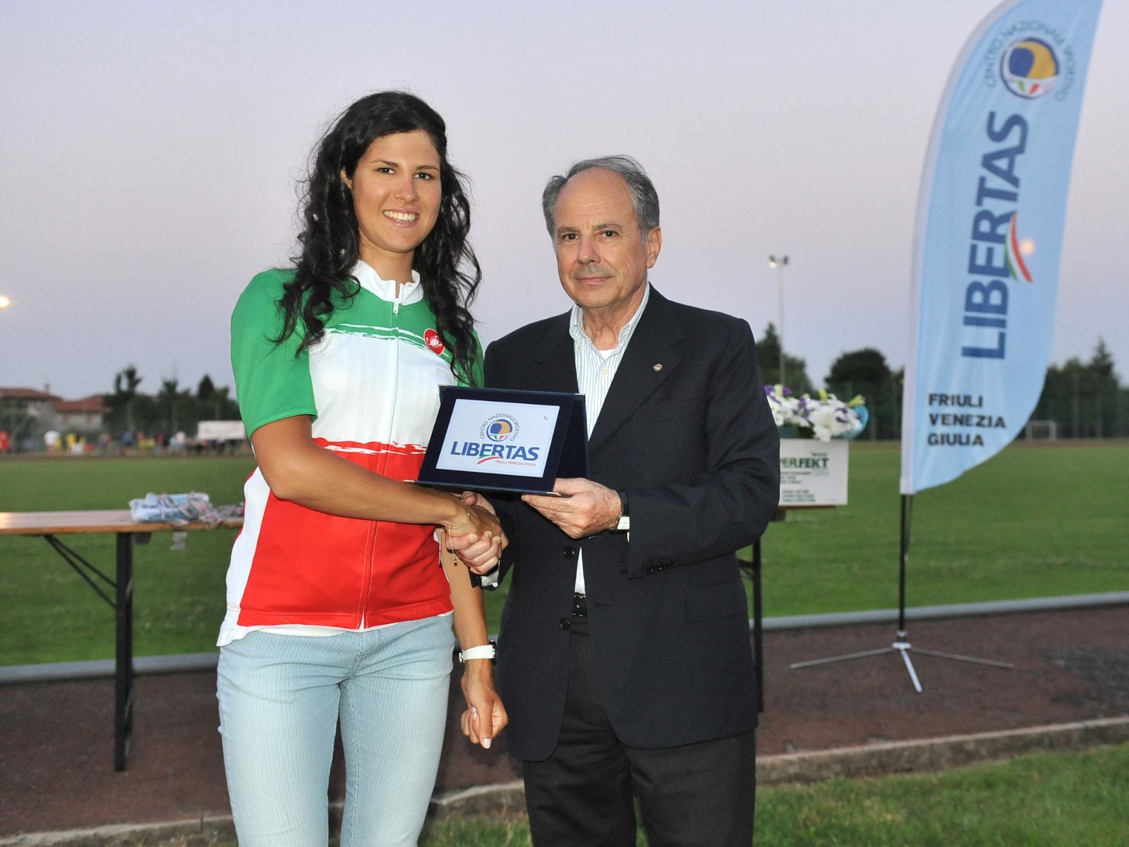Martignacco (Udine), 16.7.2015 - La Società Ciclistica Bujese ha vinto il Primo Trofeo Libertas categoria giovanissimi, per atleti dai 7 ai 12 anni di età, che è stato corso a Martignacco con la partecipazione di ben 130 corridori di 14 società del Friuli Venezia Giulia e del Veneto, il che ha portato il Presidente della Libertas Friuli Venezia Giulia, Bernardino Ceccarelli a "spingere sui pedali" con una delle sue proposte da fuoriclasse. E' stato nell'occasione lo stesso Presidente, infatti, rilevando che il Trofeo ha avuto nei numeri un successo tale da prefigurare un sviluppo molto più articolato per il settore, a fare appello a tutte le Società Sportive che hanno una sezione ciclistica giovanile affinché collaborino per dare vita a uno specifico circuito di gare a punti, che culmini in una grande manifestazione finale con premiazioni, in modo che si possano dare le giuste soddisfazioni agli atleti e ai sodalizi e la massima visibilità allo sport del pedale. Un sport che - ha sottolineato Ceccarelli - vive i suoi grandi momenti negli appuntamenti internazionali classici, ma attinge le proprie forze nell'enorme bacino delle piccole Società che ben raramente sono conosciute e quasi mai ricordate. Un esempio positivo - ha soggiunto il Presidente Ceccarelli alle Premiazioni del Primo Trofeo Libertas, in cui è stato affiancato dal Presidente della Libertas Ceresetto (Udine), Andrea Cecchini - si è visto proprio in questa occasione, con la partecipazione alla cerimonia finale di due atlete che sono state delle grandi cicliste professioniste: Mara Mosole, di Treviso, e Nada Cristofoli, di Spilimbergo (Pordenone), medaglia d'argento in un Mondiale su Pista e dell'attuale campionessa italiana su strada donne élite, Elena Cecchini, di Mereto di Tomba (Udine) in predicato per le Olimpiadi di Rio 2016. Proprio Elena Cecchini, come anche Pietro Mennea, Sara Simeoni, Enzo Dal Forno, Venanzio Ortis, Daniele Molmenti e Alessia Trost, è nata nella Libertas, avendo corso dal 1999 al 2004 proprio nei "giovanissimi" della Società di Ceresetto, alla quale ha qui voluto rendere omaggio. La manifestazione è stata infatti organizzata proprio dalla Libertas Ceresetto Pratic Danieli nell'ambito di un calendario iniziato a maggio e che comprende un prossimo appuntamento il 29 luglio, sempre per i giovanissimi e a Martignacco, con il IV Trofeo Dono Sport e Salute; ed un altro il 20 settembre con tre gare per diverse categorie, a Ceresetto.