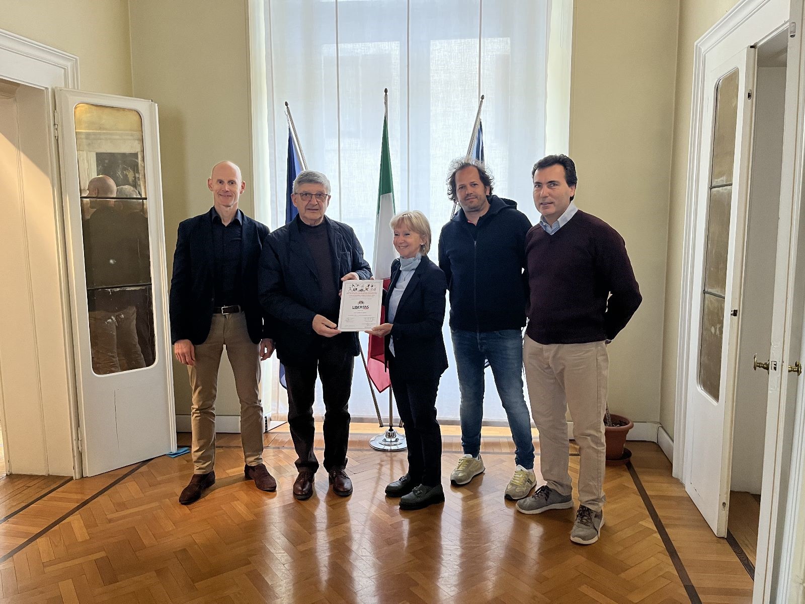 Libertas Fvg e Scuola formazione Libertas Fvg consegnano ai docenti del liceo Uccellis di Udine i primi attestati formativi di Footbike