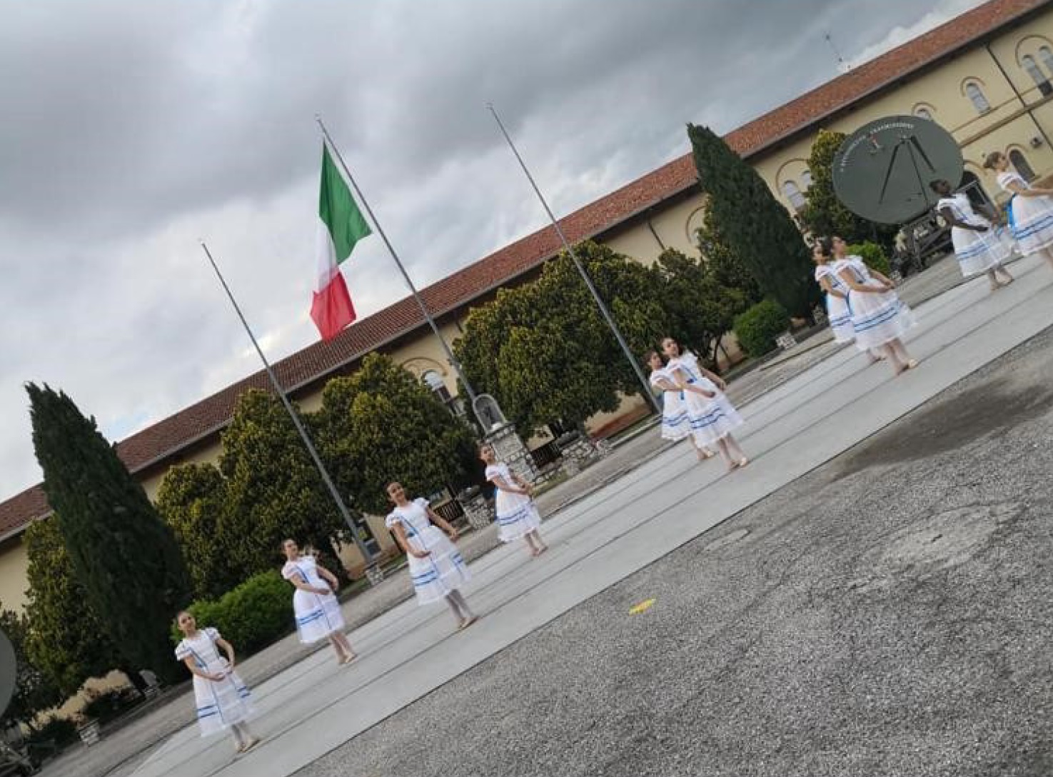 L’evento è stato emozionante e molto bello; per l’esibizione è stato allestito uno spazio nel cortile della caserma circondato dai mezzi militari posizionati per l’occasione.