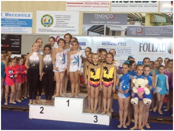 Per nulla intimorite sono scese in pedana tutte le ginnaste della prima fascia, Alessia Caputo, Giada Mozzon, Elena Trentin, Valentina Valeri, che con la loro grinta, determinazione e perfetta sincronia, hanno conquistato l’attenzione della giuria, aggiudicandosi così il gradino più alto del podio sia nella classifica generale che nella classifica di coppie.