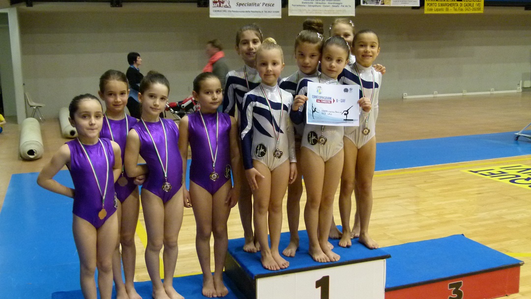 Pordenone, 22.3.2016 - Ottima performance per le ginnaste Libertas Porcia (griffate Calzedonia) impegnate a Caorle, dove hanno conquistato tre podi. Nel trofeo Prime Gare (valido per l'accesso alle finali tricolori di Pesaro) la squadra di seconda fascia d'età composta da Alice Pivetta, Marta Rigo e Allison Gris ha centrato il primo posto. Le compagne di prima fascia Chiara Moratto, Ada De Marco e Elena Del Puppo hanno chiuso quarte sul parterre di 32 società. Nella successiva gara Open Giovani la Libertas Porcia ha fatto en plein accomodandosi sul primo e secondo gradino, un risultato che premia il lavoro dei tecnici Elisa Pegolo, Karin Freschi, Annalisa Misogano e Francesca Bristot.