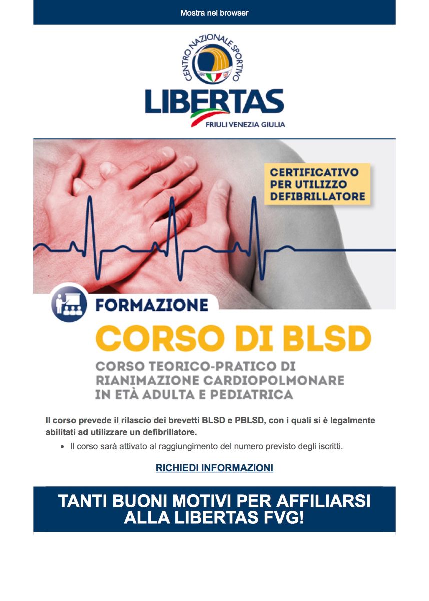 Udine, 30.9.2016 - Il Centro Regionale Libertas del Friuli Venezia Giulia ha lanciato una nuova campagna promozionale per incrementare le adesioni allo stesso Ente di promozione sportiva che conta già 199 Società affiliate con oltre 19mila tesserati. L'iniziativa, che si sviluppa attraverso il web, è rivolta a tutte le Società sportive della regione che ancora non fanno parte della famiglia Libertas ed illustra in modo chiaro e sintetico i servizi e le opportunità offerte dall'affiliazione.