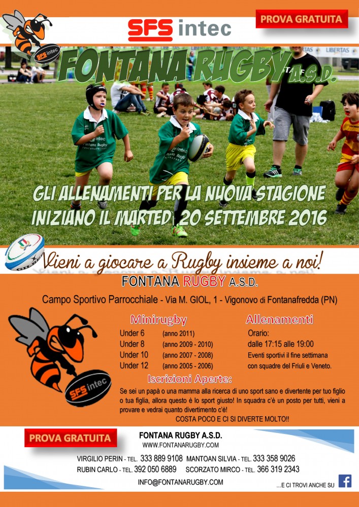 Gli allenamenti si svolgono dunque il martedì dalle 17.15 alle 19.00 presso il Campo Sportivo Parrocchiale in Via M. GIOL, 1 a Vigonovo di Fontanafredda (PN).