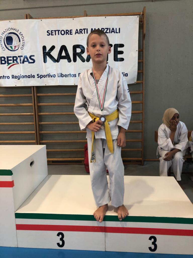 Brilla e sorprende anche il giovane Denis Spanic, in piazza d’onore nel kata Under 14.