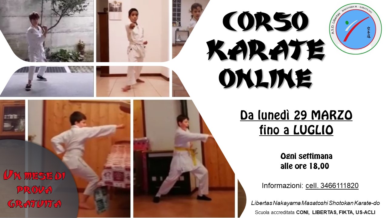 Parte lunedì 29 marzo il nuovo corso di karate online della Libertas Nakayama. Le lezioni si terranno tutti i lunedì alle ore 18.00 fino al mese di luglio.