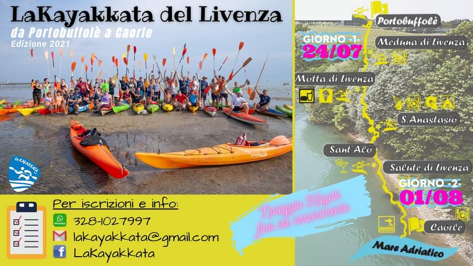 Ritorna anche quest’anno l’ormai tradizionale appuntamento per gli amanti della natura con La Kayakkata, organizzata dall’omonima associazione affiliata alla Libertas. La settima edizione della discesa del fiume Livenza da Portobuffolè a Caorle in kayak si svolgerà sabato 24 luglio e domenica 1° agosto, in due giornate separate, a causa delle restrizioni dovute all’emergenza sanitaria.