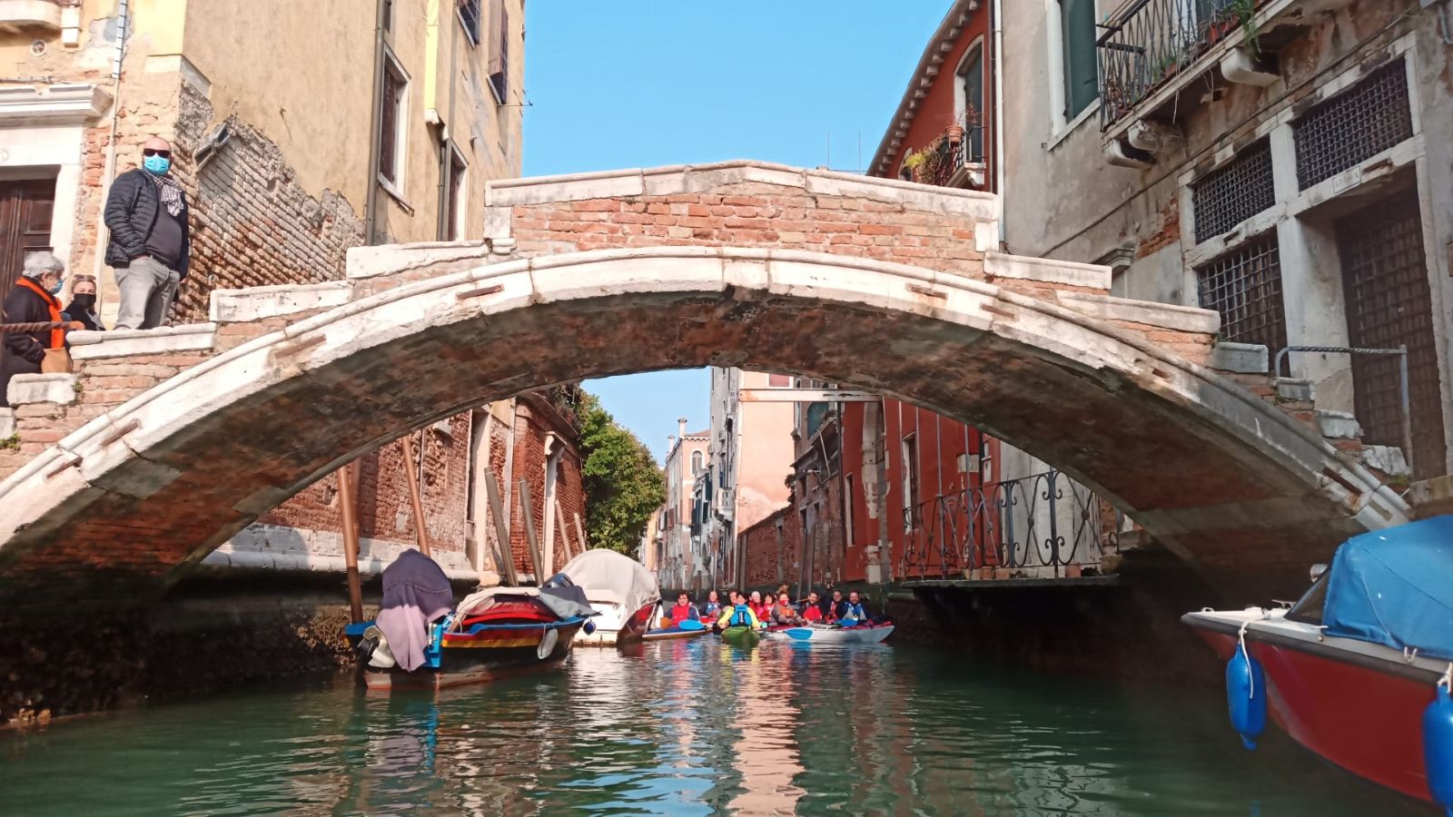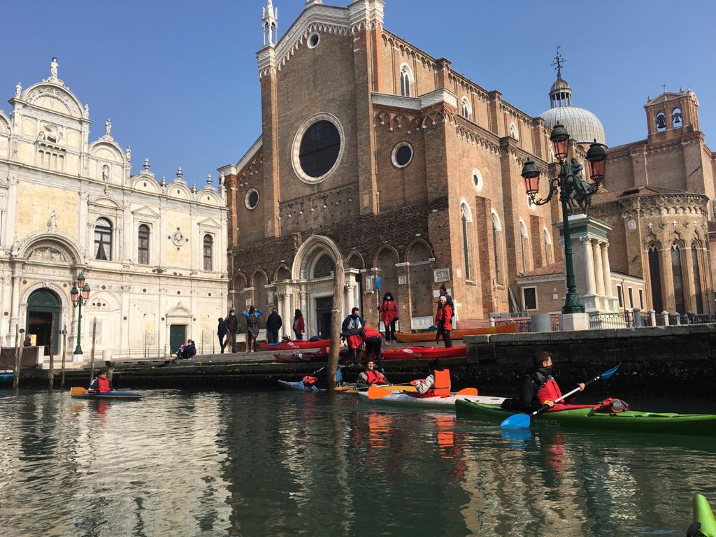 Rispettate tutte le misure di sicurezza anticovid, i 12 kayakkanti domenica 21 febbraio si sono imbarcati a Campalto, armati di pranzo a sacco. Senza toccare terra, hanno potuto riscoprire le bellezze della propria terra da un punto di vista esclusivo. Hanno prima visitato l’isola di Campalto, per poi entrare a Cannaregio, San Alvise e San Girolamo. Un giro attorno al ghetto vecchio, affiancando Madonna dell'orto per la Sensa con i suoi bacareti.