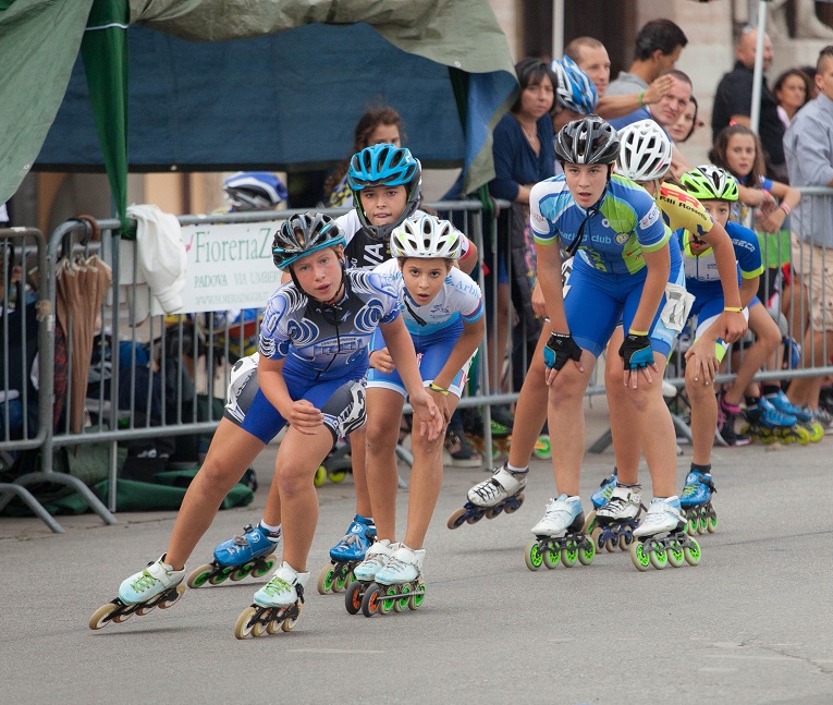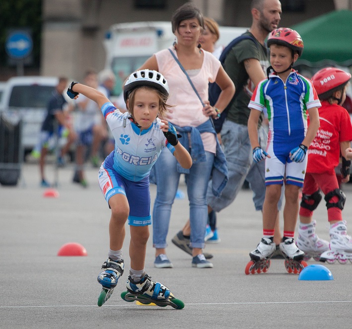Pordenone, 21.9.2015 - L'immensa e monumentale piazza di Prato della Valle (Padova) ha ospitato la terzultima tappa del Gran Prix Giovani, una manifestazione interregionale (ha visto scendere in pista oltre 200 atleti) allestita accanto alla quinta scenografica della storica Loggia Amulea. E la Pattinaggio Libertas Porcia non ha mancato di farsi onore, forte di una decina di sprinter agli ordini del tecnico Marco Nuvolara. A raccogliere il maggior alloro è stata Aurora Sisani, rincasata con un argento al collo, gettatasi nella mischia agonistica dopo una corroborante pausa. Buon exploit anche da parte di Giorgia Fasan (settima). Sulle gare lunghe dei più grandi (come la 5000 a eliminazione) è stata invece lotta senza quartiere. "C'è bisogno di più esperienza, ma almeno non abbiamo visto cadute" commenta "Mamma Sprint" Raffaella Gava, come sempre al séguito delle figlie. Piazzamenti quindi per Alexia Sisani (9° posto), Vanessa Fasan (21°), Cristian Rossetti (10°) e Andrea Orefice (17°). Nella categoria Cuccioli, la piccola Ester Rebellato ha stupito lo staff, impressionato dalla sua grinta, e per questo già definita "una campionessa in erba". Il calendario prevede ora la tappa di Menà (Verona) cui seguirà la gran finale a Bagnoli di Sopra (Padova).