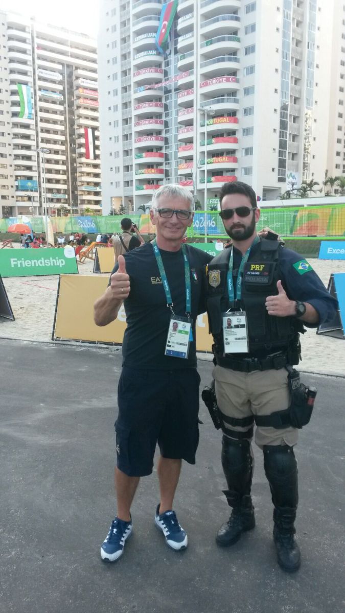 In foto: Mauro Baron e Stefanie Horn a Deodoro (in alto); Giovanni De Gennaro con il Presidente Matteo Renzi di spalle (al centro); Mauro Baron e un addetto alla sicurezza (in basso).