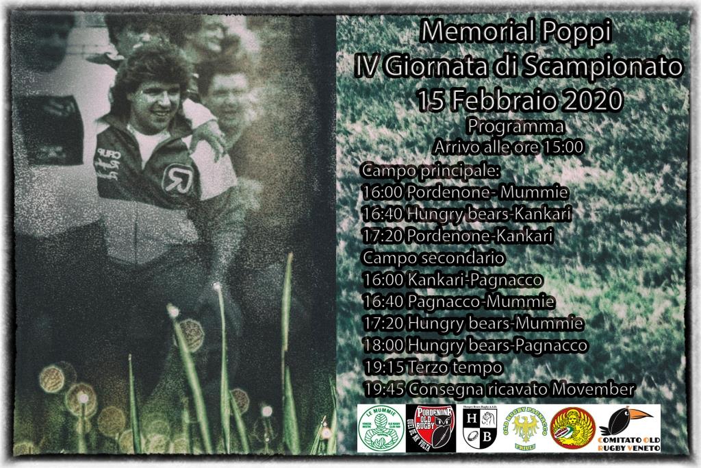 Si parte il pomeriggio di sabato 15 con il Memorial Poppi, un evento che ospita una tappa di Scampionato con 5 balde squadre Old: quei de Na volta Pordenone, Mummie Favaro Veneto, Kankari Venezia lido, Pagnacco e hungry bears da Udine .