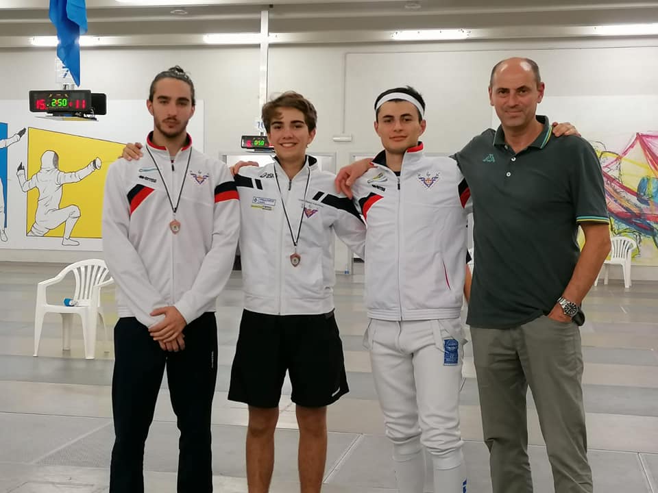 Il 14° posto ha invece permesso di qualificarsi per la fase nazionale Alessandro Candido, che dopo una lunga pausa è ritornato in pedana con tanta voglia di gareggiare. In premiazione, con il pass per Bastia Umbra, Marco Pellis 7° e Leonardo Bernardin 5°. Quest’ultimo, dopo una gara combattuta fino all’ultimo, manca l’accesso alle semifinali per una sola stoccata.
