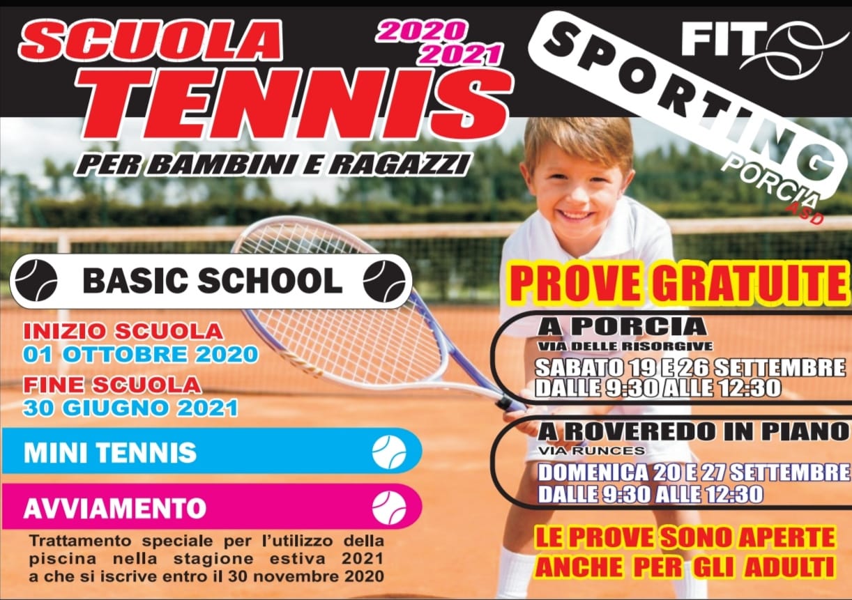 Ricomincia la stagione sportiva allo Sporting Porcia Libertas. Parte infatti il 1° ottobre la scuola di tennis per bambini e ragazzi. Il corso durerà fino al 30 giugno 2021.