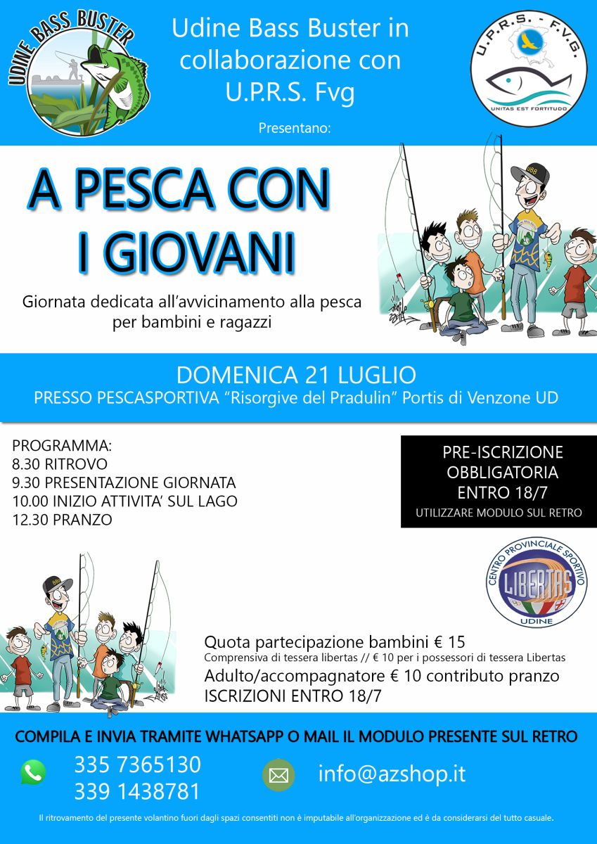 L’Udine Bass Buster Libertas, in collaborazione con l’UPRS FVG ed il sostegno della Libertas Provinciale di Udine, organizza domenica 21 luglio “A pesca con i giovani”. Un’intera giornata dedicata all’avvicinamento alla pesca per bambini e ragazzi.