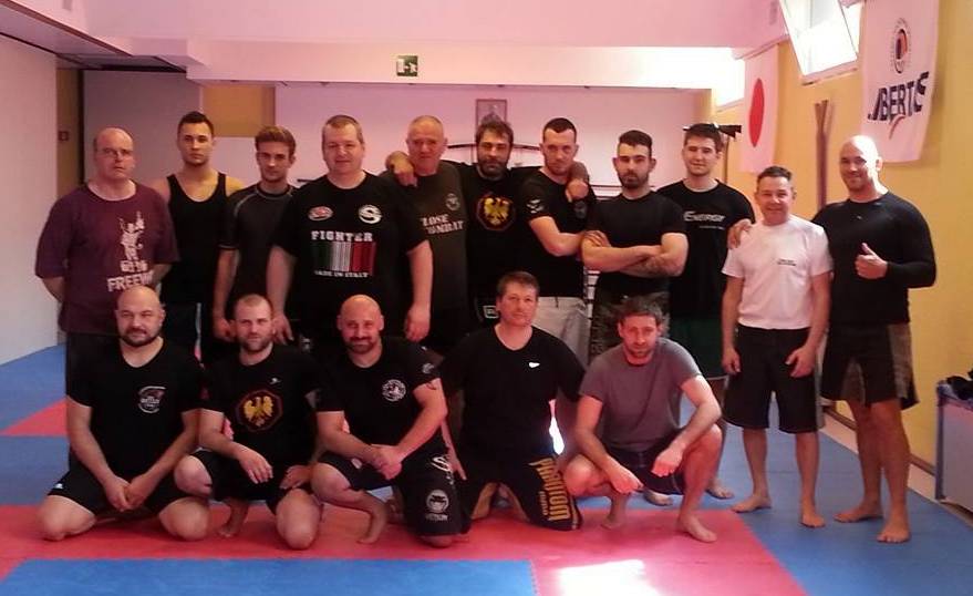 Ronchi dei Legionari (Gorizia), 8.4.2015 - Si è conclusa con successo a Ronchi dei Legionari la due giorni di lavori del secondo corso istruttori dedicato, con una parte teorica e una pratica, alle arti marziali miste (MMA) e al quale hanno dato vita una quindicina di partecipanti seguiti dal Maestro Filippo Leone (nella foto). L'iniziativa è stata promossa dall'Asd MMA-Grappling e Sport da Combattimento, presieduto da Fabrizio Scardovelli, il quale è anche Presidente e responsabile regionale Libertas per le Arti Marziali Miste. Nelle venti ore di lavoro, nella sezione di Ronchi dell'associazione sportiva isontina ospitata nel "Dojo Yoseikan" in via Mazzini 44. Nella due gorni, oltre al seminario, i partecipanti hanno così potuto svolgere esercizi per migliorare lo striking e il passaggio da striking a clinch, seguire le applicazioni di alcune varianti di footwork, quattro varianti di greco roman clinch con relativi cambi di posizione, la presentazione e la dimostrazione di una decina di takedown di base e il lavoro specifico sui primi tre, il lavoro a terra da cross side, kesa gatame e north south con lavoro specifico su posizione, cambi di posizione, sottomissioni e applicazione di combinazioni di G&P.