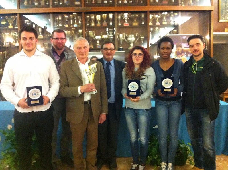 Gorizia, 10.4.2015 - Giada Andreutti, Isabella Martinis, Eleonora Omoregie, Stefano Petrei e Federico Rossi sono i cinque atleti dell'Atletica Malignani Libertas Udine premiati dalla Fidal sabato scorso 28 marzo a Gorizia nella sede dell'Unione ginnastica goriziana. Ad essi vanno aggiunti Marco Bortolato e Desiree Rossit, pure nostri tesserati, ma che fanno parte del gruppo sportivo delle Fiamme oro. La nostra società si è aggiudicata la coppa di vincitrice del titolo regionale allievi maschile e femminile.