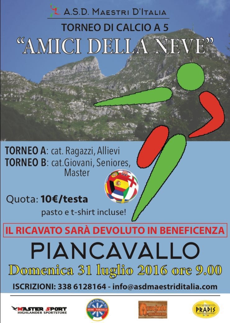 Domenica 31 luglio a Piancavallo andrà in scena il tornea di calcio a 5 “Amici della Neve”. Il ricavato dell’evento sarà devoluto in beneficenza.