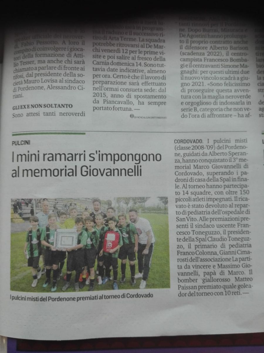 Sabato 26 Maggio 2019 abbiamo giocato a Cordovado il 3° Memorial Marco Giovannelli, organizzato dalla Spal Cordovado.