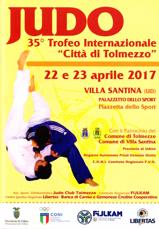 Il 35° Trofeo internazionale di Judo "Città di Tolmezzo", organizzato dal Judo Tolmezzo, è in programma nei giorni 22 e 23 aprile, e si terrà per la prima volta al Palazzetto dello Sport di Villa Santina.