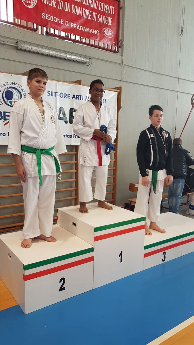 Fra i più giovani, nella categoria Fanciulli, la giovane promessa del karate Bryan La Sala si fregia di ben due medaglie. Vince infatti l’oro nel kata e il bronzo nella prova del palloncino, confermando quindi il “vizio” di salire sul podio ad ogni gara sostenuta.