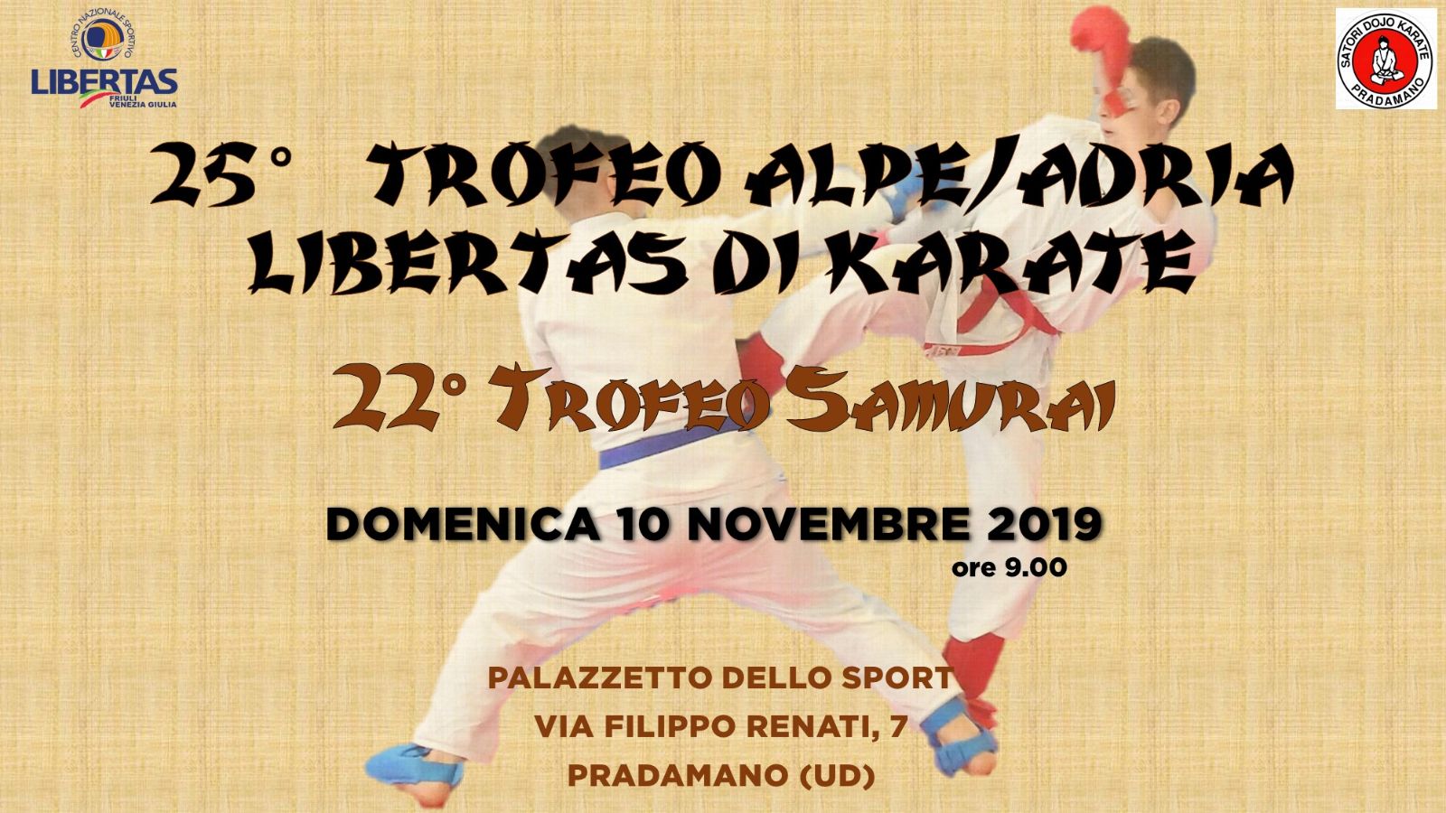 Oltre 200 atleti, 20 associazioni sportive provenienti da Veneto e Friuli-Venezia Giulia. Questi i numeri del 25° Trofeo Alpe Adria Libertas di Karate che si sbolgerà domenica 10 novembre 2019 presso il Palazzetto dello Sport in via F. Renati 7 a Pradamano, sotto l’egida del Centro Regionale Libertas FVG e con l’impeccabile organizzazione della Satori Dojo.