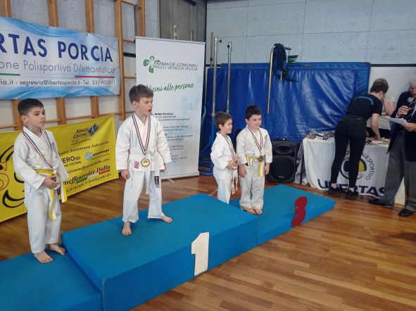 Entusiasmo e ottimi risultati hanno caratterizzato la partecipazione della Associazione Sportiva Dilettantistica Libertas Nakayama Masatoshi Shotokan Karate-Do di Artegna e Tarcento alla 28esima edizione del Trofeo Città di Porcia, gara di karate Libertas ospitata nel palazzetto delle scuole medie della cittadina purliliese. A margine dell’evento ha espresso il suo plauso Lorenzo Cella, presidente regionale Libertas Fvg: «Complimenti a tutta la squadra. Avete raggiunto dei risultati importanti. Continuate così».