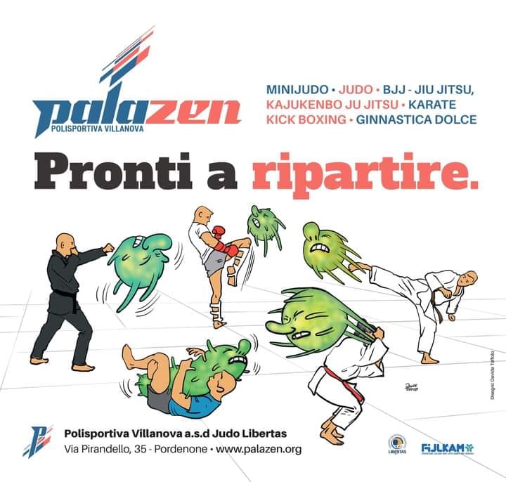 Stanno infatti ricominciando al Palazen tutti i corsi, di judo, brazilian jiu jitsu, kajukenbo, karate, kick boxing e ginnastica dolce… pronti a ripartire e a vincere il Coronavirus, come suggerisce la simpatica locandina ideata proprio per dare il buon augurio alla nuova stagione sportiva.