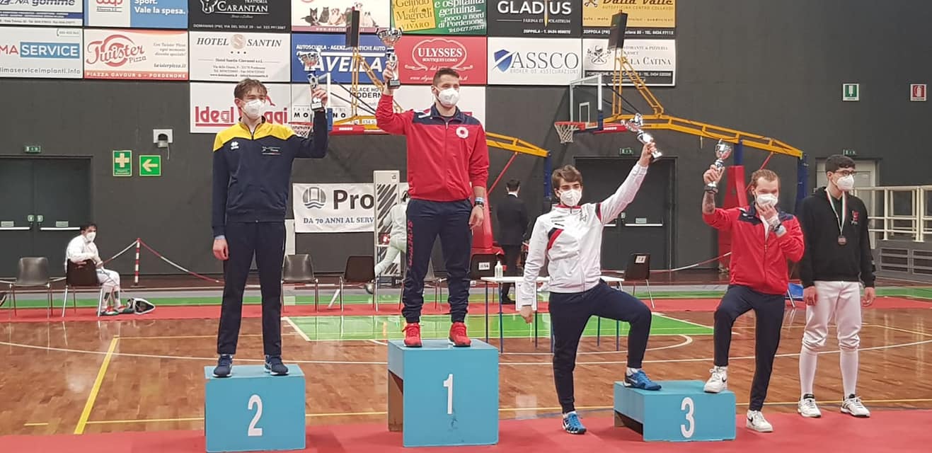 La domenica entrambi tornano in pedana per misurarsi con la spada, insieme ai compagni di squadra Alexander Mazzoni, Mirco Sambuco e Samuele Scarano, tutti e tre alla prima esperienza nella categoria Assoluti (classe 2006), con la guida attenta dei maestri Mihail Banica e Viktoriya Lyakhova, e con il supporto di tutta la società.