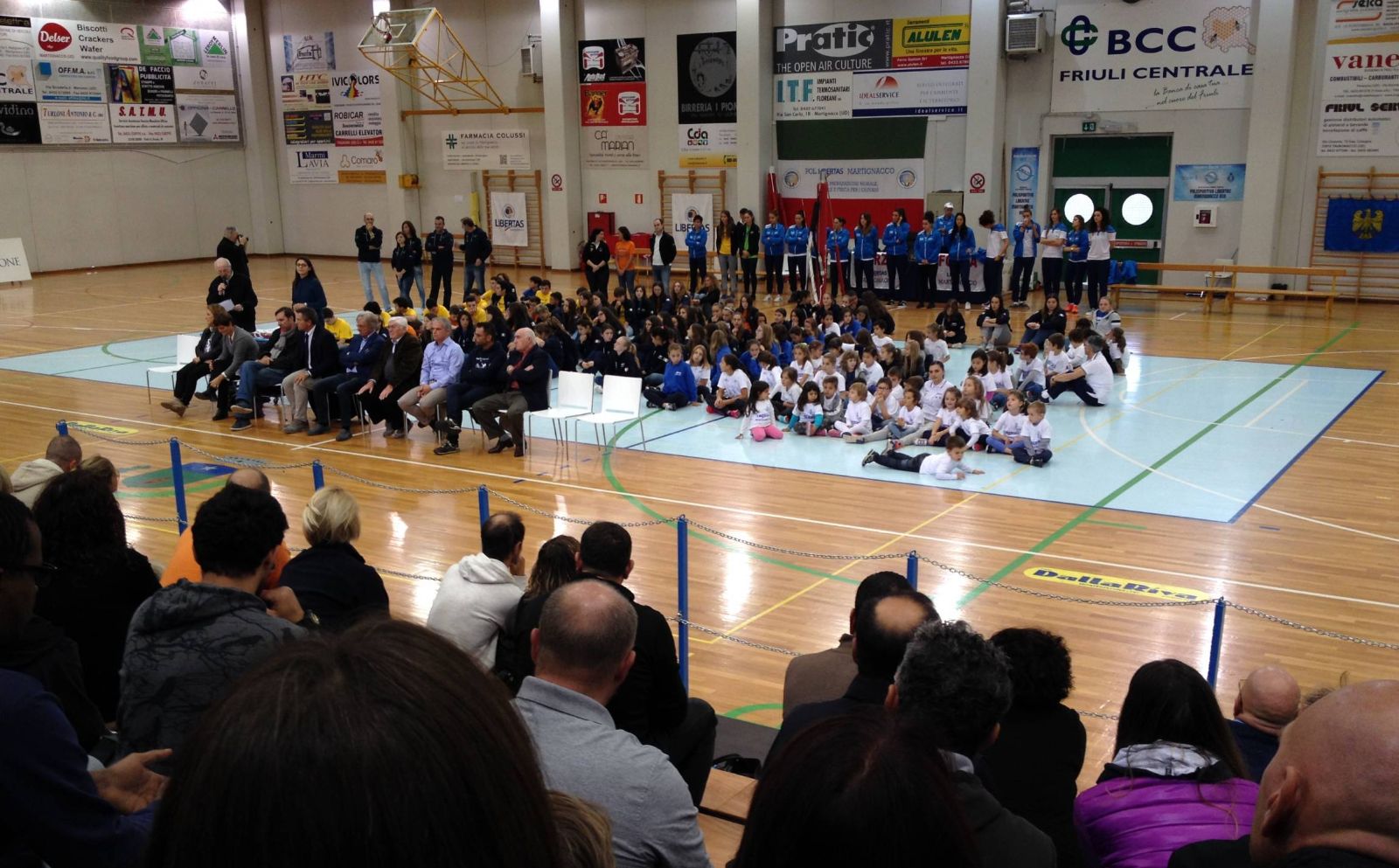Martignacco (Udine), 23.10.2016 - Festa e pubblico delle grandi occasioni nel Palazzetto dello Sport Atleti Azzurri d'Italia per la presentazione dell'attività e della forza della Polisportiva Libertas Martignacco, che ha fatto da prologo all'incontro della prima squadra che milita in B1 femminile. Indisponibile il Presidente storico Bernardino Ceccarelli al quale sono andati gli auguri di pronta guarigione da parte di tutti presenti, è toccato al suo Vice, Giuseppe Bulfoni illustrare la consistenza della Libertas Martignacco che, avendo questo anno raggiunto quota 210 atlete e atleti ha registrato un aumento del 25 per cento rispetto al 2015. In questa stagione, che vedrà il prossimo 10 gennaio la ricorrenza dei 40 anni di fondazione della Società - ha proseguito Bulfoni - la Polisportiva Libertas Martignacco sarà impegnata in 14 campionati: dieci femminili, tre maschili e uno misto, oltre quello del gruppo amatoriale dei genitori. In dettaglio ci sono due squadre di minivolley (una Martignacco, una di Moruzzo), una Under 12, due Under 13 (una di Moruzzo), una Under 14, due Under 16 che giocano anche in serie D, una Under 18 che disputa anche la I Divisione, la formazione di B1; quindi le maschili Under 13, 14 di Martignacco e Moruzzo e Under 16 mista di Martignacco e Pasian di Prato e le formazioni dei cuccioli dell'asilo alla II elementare di Martignacco e Moruzzo. I genitori dell'amatoriale, infine, sono 15. In rilievo è stata quindi posta la politica societaria di essere sempre all'avanguardia per la tutela della salute delle atlete e degli atleti, con una programma che quest'anno si concretizza con la presenta dei preparatori atletici e tutti i livelli, in modo che si possano ridurre sempre di più i rischi di e da infortuni. Sempre in chiave sociosanitaria e sportiva si colloca anche l'adesione - ufficializzata nella cerimonia odierna - della Polisportiva Libertas Martignacco all'Associazione italiana per la donazione di organi, tessuti e cellule (AIDO). Come ha spiegato il dirigente nazionale dell'AIDO Daniele Damele, anche se l'adesione effettiva parte dalla maggiore età, quella dei più giovani è in chiave educativa, attraverso lo sport e lo stile di vita, allo scopo di mantenere la buona salute e non rischiare di andare a ingrossare un giorno liste d'attesa che sono già preoccupantemente cariche: in Italia - ha evidenziato - ci sono oltre 10mila persone in attesa di trapianto, di cui ben settemila aspettano un rene.